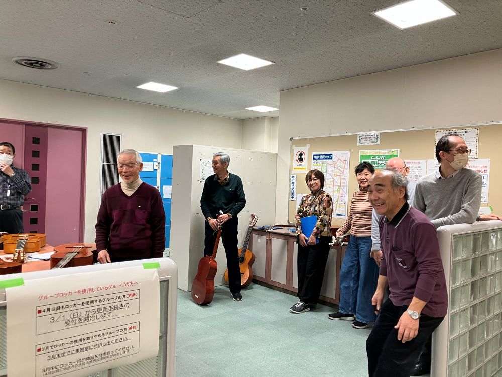 11時集合でみなさんギターの用意をし、リラックスしているところ。あとひとりメンバーを待っています。